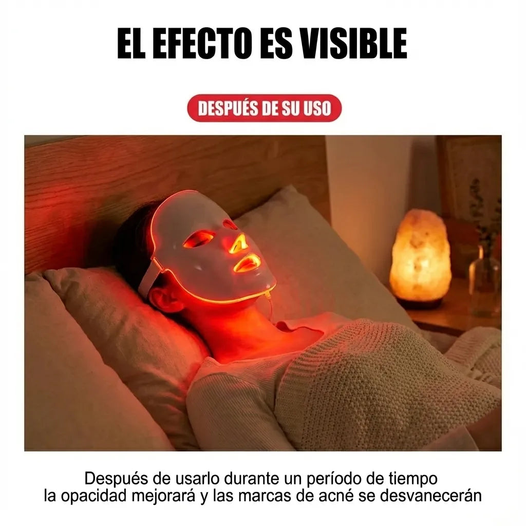 La máscara emite luces LED de baja intensidad que actúan sobre la piel. Cada color apoya una necesidad distinta: acné, manchas, firmeza o luminosidad. La luz estimula procesos naturales de la piel como el metabolismo celular y la circulación, ayudando a que el rostro se vea más saludable.